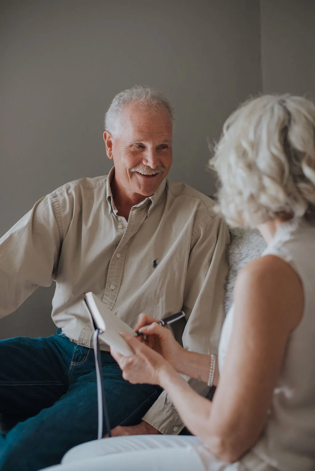 We begin the session with warm, fun, inquisitive conversation, which allows you to share your goals and desired outcomes, known as pre-talk.